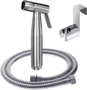 Premium Quality Material : Hand held bidet sprayer is very flexible made of high quality New 304 stainless steel with enhanced double-lock system, leak-proof design of stainless steel sprayer, the hose has a stainless steel casing with an EPDM inner tube better than PVC) and nylon braided for additional durability. and the holder and hanger is made from stainless steel too.