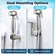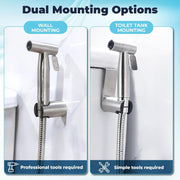 This faucet bidet sprayer includes everything you need for a quick and easy setup, even if you're not handy. Install it in minutes without hiring a plumber. Plus, choose from wall or tank mounting options for the perfect fit.