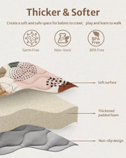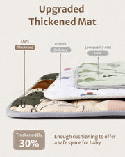 Thicker & Soft Premium Foam: Our baby play mats for floor is thicker than most other brand baby play mat. And it's made of premium soft padding foam and fabric top layer to ensure a soft and cushioned surface, providing a comfortable place for your little one to relax, play and work on their developing skills