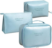 Three different sizes and styles: Makeup bag set for girls or women, perfect for storing makeup everyday. The cosmetic bag set includes a tote cosmetic bag for wallet, toiletries for travel bag, and a large bag organizer. It can also make cosmetic storage neat, save space, and store quickly.
