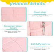 SYOSI Plush Makeup Bag, , 3 Pcs Checkered Cosmetic Bag Zipper Travel Bag Portable Multi Functional Capacity Bag Cute Makeup Brushes Storage Bag, Pink, Blue, White