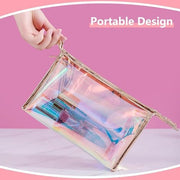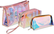 Tazweeq 3 Pieces Holographic Makeup Bag Portable Travel Iridescent Cosmetic Pouch TPU Waterproof Cosmetic Bags for Makeup Tools Organize, Women Toiletries, Travel, Pencil Case