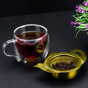 Tealand Durable Stainless Steel Fine Mesh Gold Infuser with Tray Perfect Size Suitable To Any Teapot Mugs Cups To Steep Green Black Herbal Oolong Loose Leaf Tea 10x7.3cm