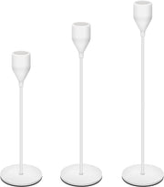 TERRIFI 3 Pcs Candle Holders for Taper Candles, Decorative Candlestick Holder for Wedding, Dinning, Party, Fits 3/4 inch Thick Candle&Led Candles (Metal Candle Stand) (White)
