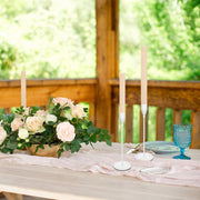 🕯【3 Piece Candle Holder Set】Candle holders set of 3 includes three size(candle not include): S 24cm / 9.4inch, M 29cm / 11.4inch, L 34cm / 13.4inch. Suitable for 3/4inch candles and LED taper candles.