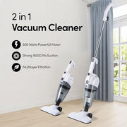 Vacuum Cleaner 2 in 1 Handheld Stick Cleaner 4M Long Cord Lightweight Powerful 600W 16000Pa Suction 0.5L Large Capacity Excellent Central Filtration System for Car Home Kitchen Hair- White