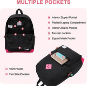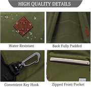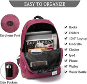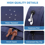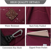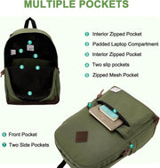 EASY TO ORGANIZE:Main compartment with double-zipper closure;One exterior zipper pocket; Water-bottle pockets on both sides,padded Ipad/Laptop pocket fits up to 15inch laptop,4 interior zipper pockets,leather zipper puller,adjustable padded Reinforced Strap ,anti-theft back pocket.