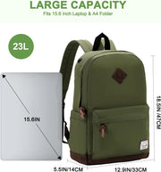 VASCHY Men's Backpack, Women's Waterproof School Bag, Boy Girl Computer 15.6 Inch Vintage for School, College, Work, Travel, Leisure