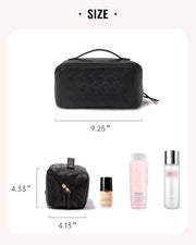 Large Capacity Design: Measuring 9.25 x 4.13 x 4.33 inches, this makeup bag offers ample space for your cosmetics and toiletries, made from high-quality PU material for a soft, lightweight, and durable feel.