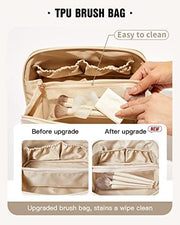 Easier Access: The flat design allows the bag to open wide, giving you a full view of all your makeup. It closes easily and quickly when you're ready to go.