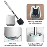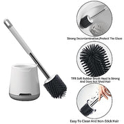 Wesoke Toilet Brush and Holder Set, Silicone Toilet Cleaner Brush Deep Cleaning Toilet Bowl Brush with Ventilated Holder & Long Handle for Bathroom Restroom, Floor Standing Toilet Scrubber Accessories