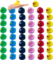 💦【Tiny colorful duckies】: The set contains 50 pcs mini ducks of the same size:1.5"L x 1.4"W x 1.4"H.It is perfect for your baby's little hands.