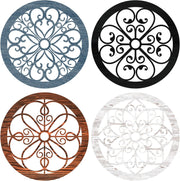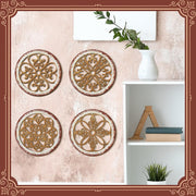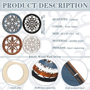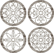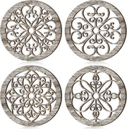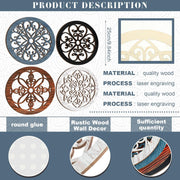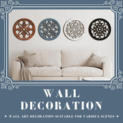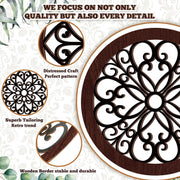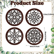 Yulejo 4 Pcs Thicken Rustic Wall Decor Farmhouse Wall Art Wooden Hollow Carved Design Decor Rustic Round Wall Art for Living Room Bedroom Hallway Decor Kitchen Wall (Black, Brown,9.8 x 9.8 Inch)