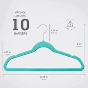 Ideal Hanger - The set of 10 elegant turquoise velvet clothes hangers is ideal for children's jackets, jeans, shirts, dresses, and other items. The velvet clothes hangers are also ideal for hanging women's adult delicates such bras, nightgowns, and camisoles.