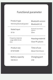 Immerse yourself in a captivating world of vibrant colours and mesmerising light with this compact yet powerful mini speaker. Its sleek and modern design features a transparent cylindrical body that transforms into a dazzling light show, illuminating your surroundings with a stunning spectrum of colours. Whether you're hosting a party or simply seeking a soothing ambience, this speaker delivers an enchanting visual experience complemented by crisp, high-quality audio. Effortlessly connect your devices via Bluetooth and enjoy your favourite tunes with exceptional clarity. Compact and portable, this mini speaker is the perfect companion for any occasion, allowing you to create a vibrant atmosphere wherever you go. Elevate your audio and visual experience with this captivating mini speaker.